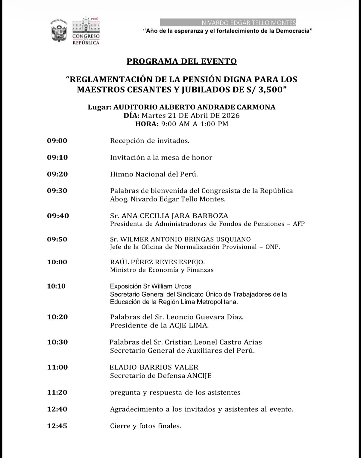 “Reglamentación de la pensión digna para los maestros cesantes y jubilados de S/ 3,500”