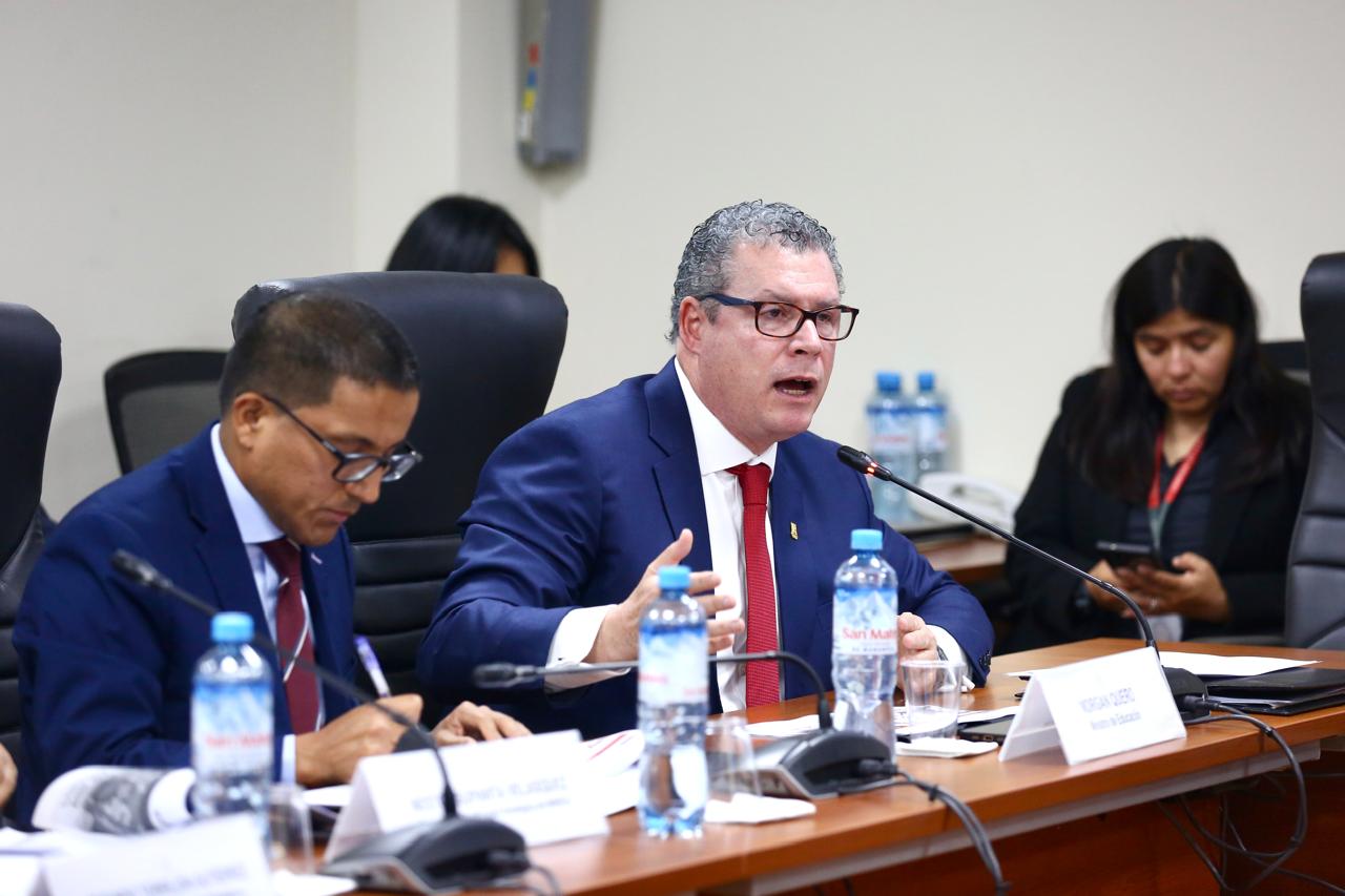 La Comisión de Presupuesto y Cuenta General de la República, presidida por el congresista Alejandro Soto, recibe al ministro de Educación, Morgan Quero, quien sustenta el presupuesto asignado a su sector para el año fiscal 2026. (Congreso de la República/JPAyala)