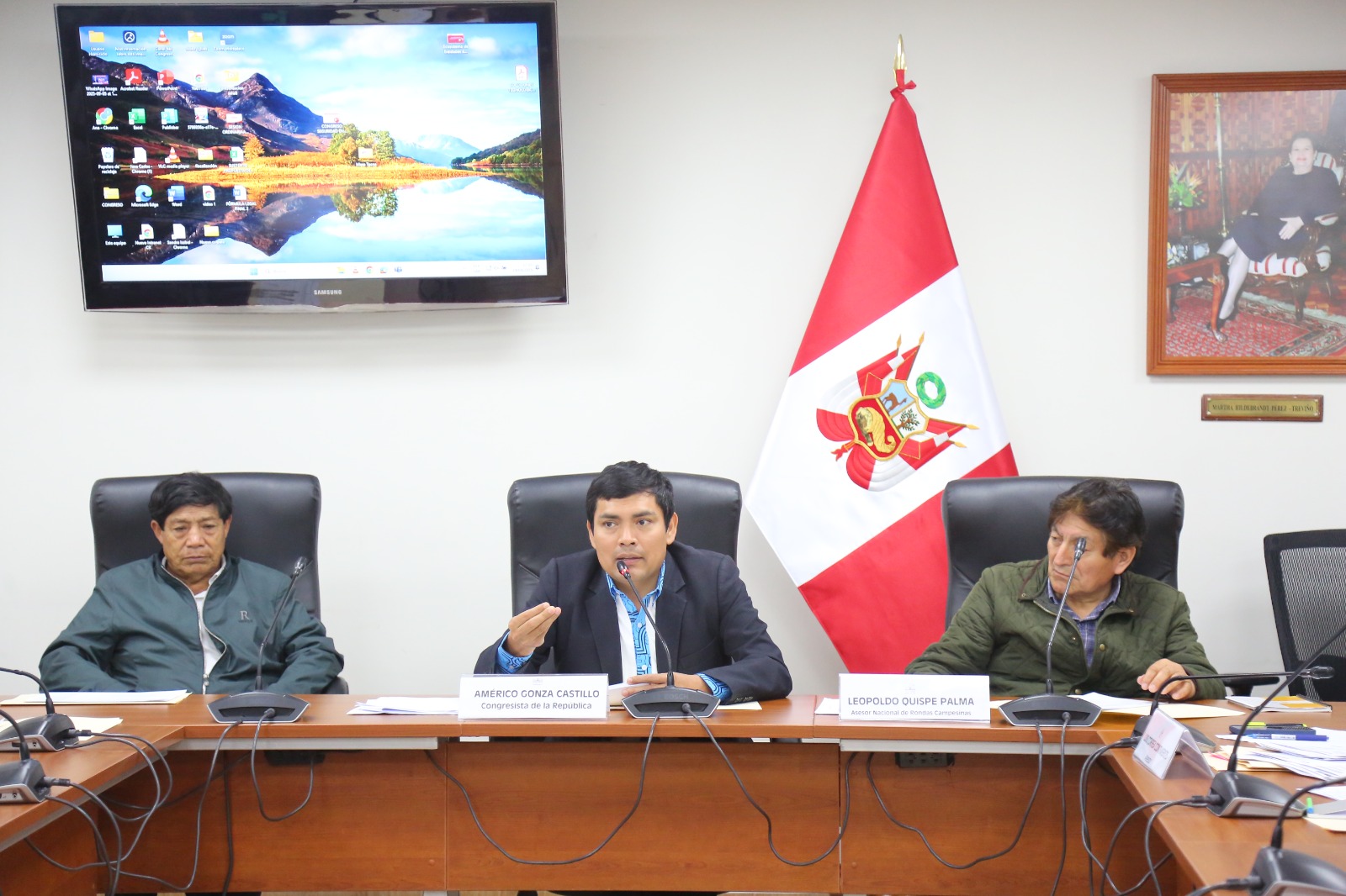 El congresista Americo Gonza participa en la mesa de trabajo organizada por su despacho en la sala Martha Hildebrandt, donde se abordan distintos proyectos de ley referentes a las rondas campesinas, nativas y urbanas. (Congreso de la República/JCSanchez)