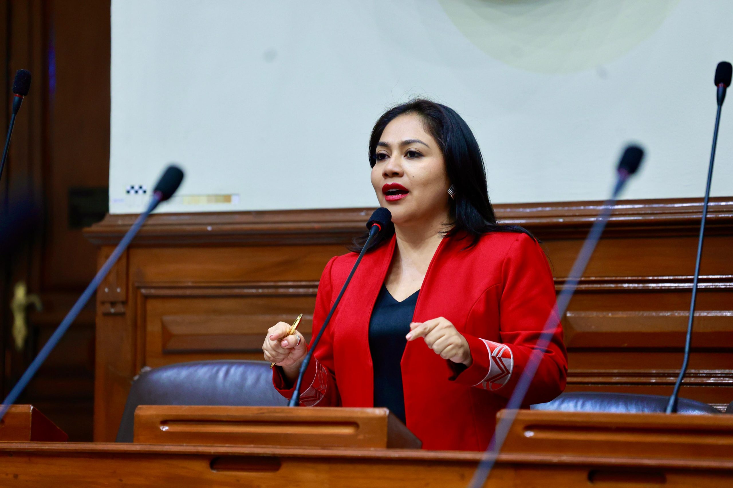 La presidenta de la Comisión de Relaciones Exteriores, Heidy Juárez, interviene en la sesión del Pleno. (Congreso de la República/JReátegui)
