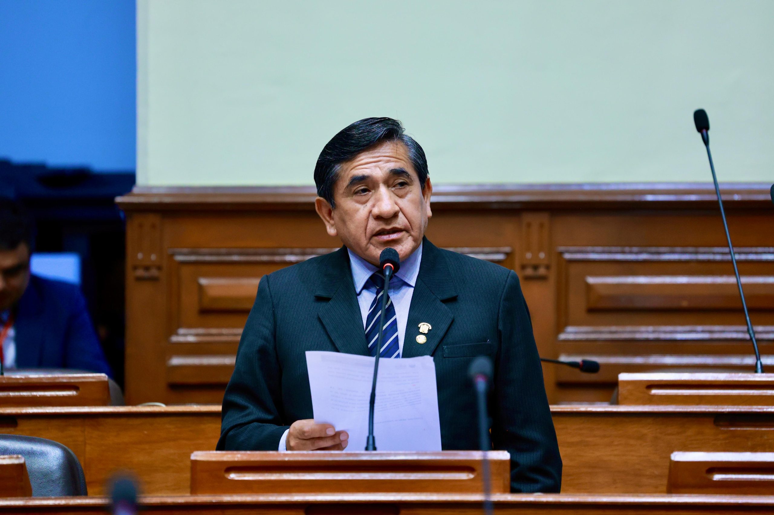 El presidente de la Comisión de Producción, Raúl Huamán, interviene en la sesión del Pleno. (Congreso de la República/JReátegui)