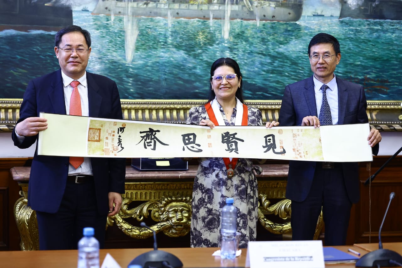El despacho congresal, encabezado por Milagros Rivas, realizó un reconocimiento a miembros de la Embajada China, destacando su labor en la educación como inspiración para las futuras generaciones. (Congreso de la República/VVásquez)