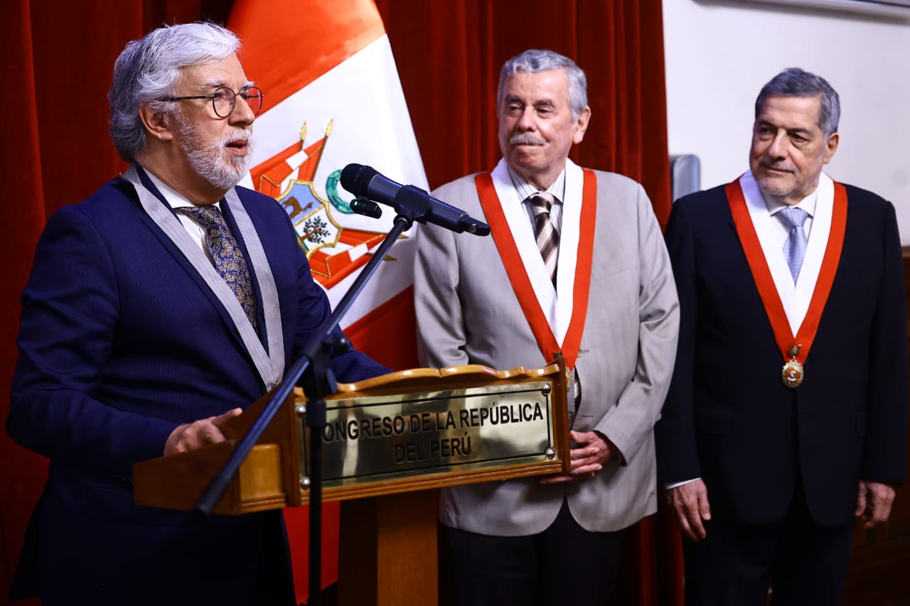 En una ceremonia precedida por el presidente encargado del Congreso, Fernando Rospigliosi, se otorgó la Medalla de Honor, en el grado de Gran Oficial, al embajador de Portugal en el Perú, Joaquim Alberto de Sousa Moreira de Lemos, por su destacada labor diplomática. (Congreso de la República/VVásquez)