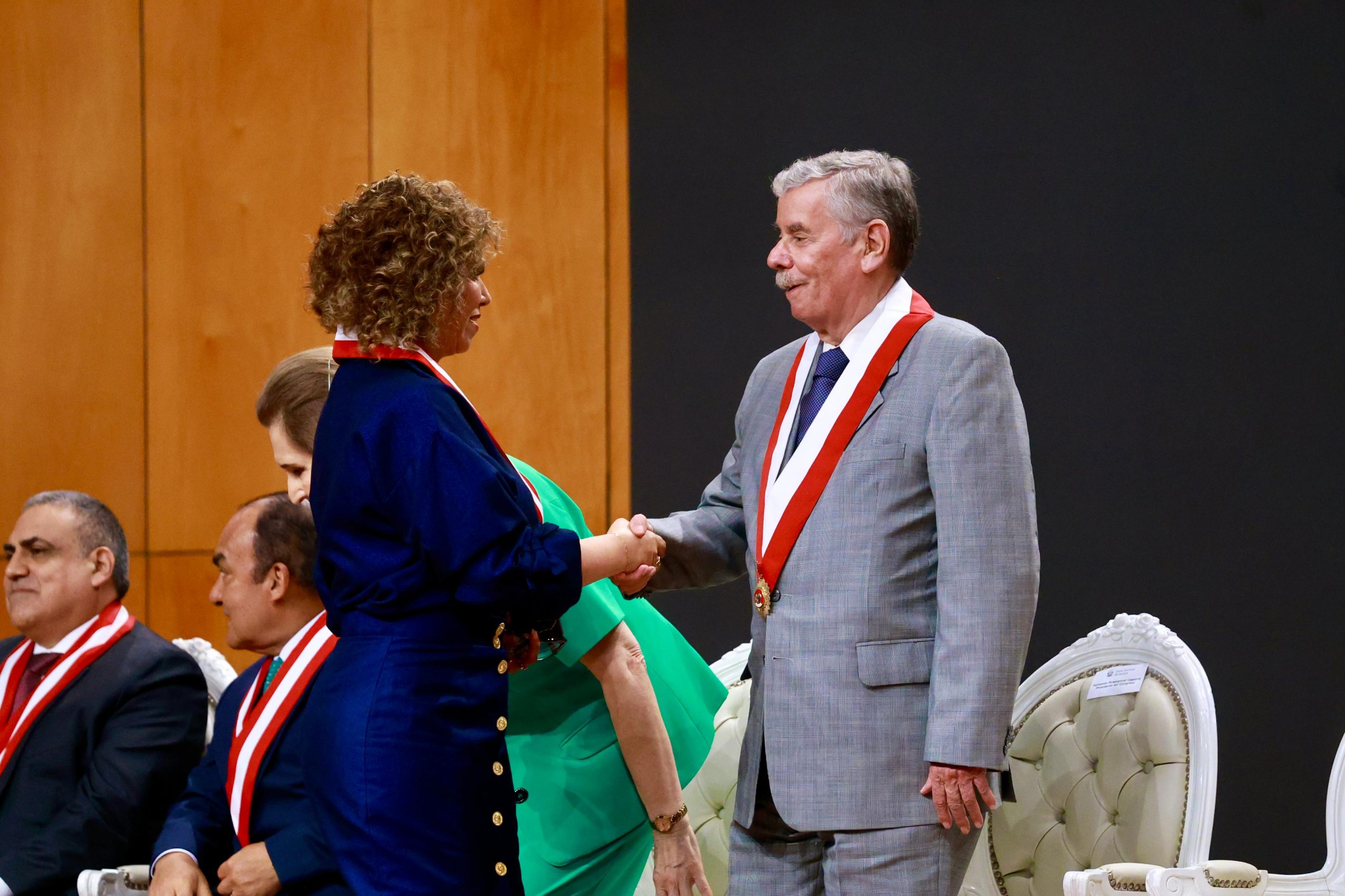 El presidente encargado del Congreso, Fernando Rospigliosi Capurro, participó en la juramentación de María Teresa Cabrera Vega como presidenta de la JNJ para el periodo 2026. (Congreso de la República/JReátegui)