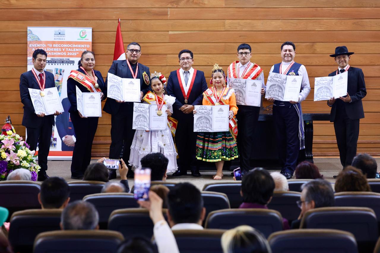 El parlamentario Elías Varas, realizó un nuevo reconocimiento a los lideres y talentos de Ancash, destacando su compromiso social, liderazgo y amor por su departamento. (Congreso de la República/JPAyala)