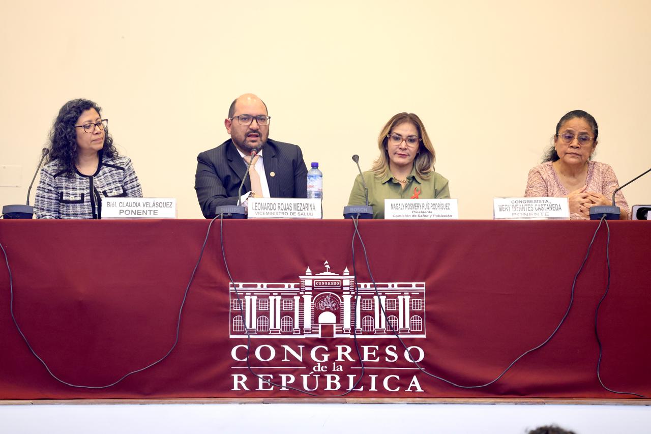 La actividad académica de concientización y prevención del VIH fue realizada por la congresista Magaly Ruiz, presidenta de la Comisión de Salud y Población, acompañada del viceministro de Salud, Leonardo Rojas Mezarina, y la congresista Mery Infantes. (Congreso de la República/JPAyala)