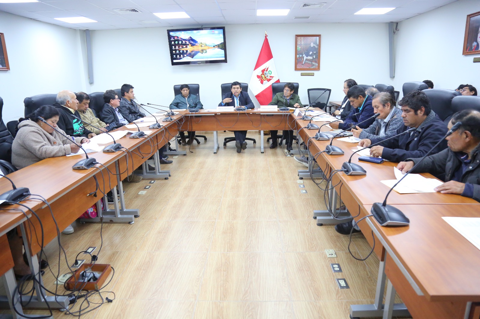 El congresista Americo Gonza participa en la mesa de trabajo organizada por su despacho en la sala Martha Hildebrandt, donde se abordan distintos proyectos de ley referentes a las rondas campesinas, nativas y urbanas. (Congreso de la República/JCSanchez)