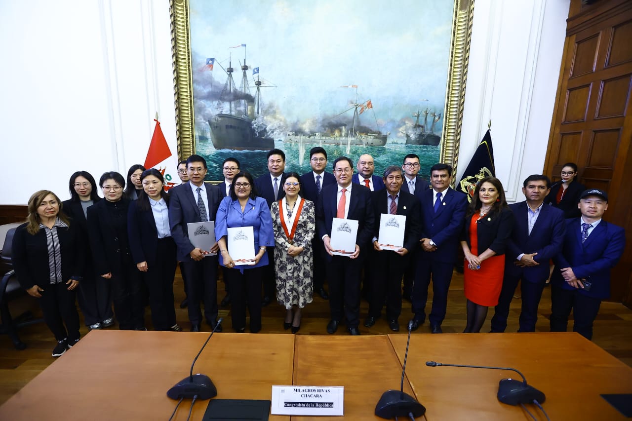 El despacho congresal, encabezado por Milagros Rivas, realizó un reconocimiento a miembros de la Embajada China, destacando su labor en la educación como inspiración para las futuras generaciones. (Congreso de la República/VVásquez)