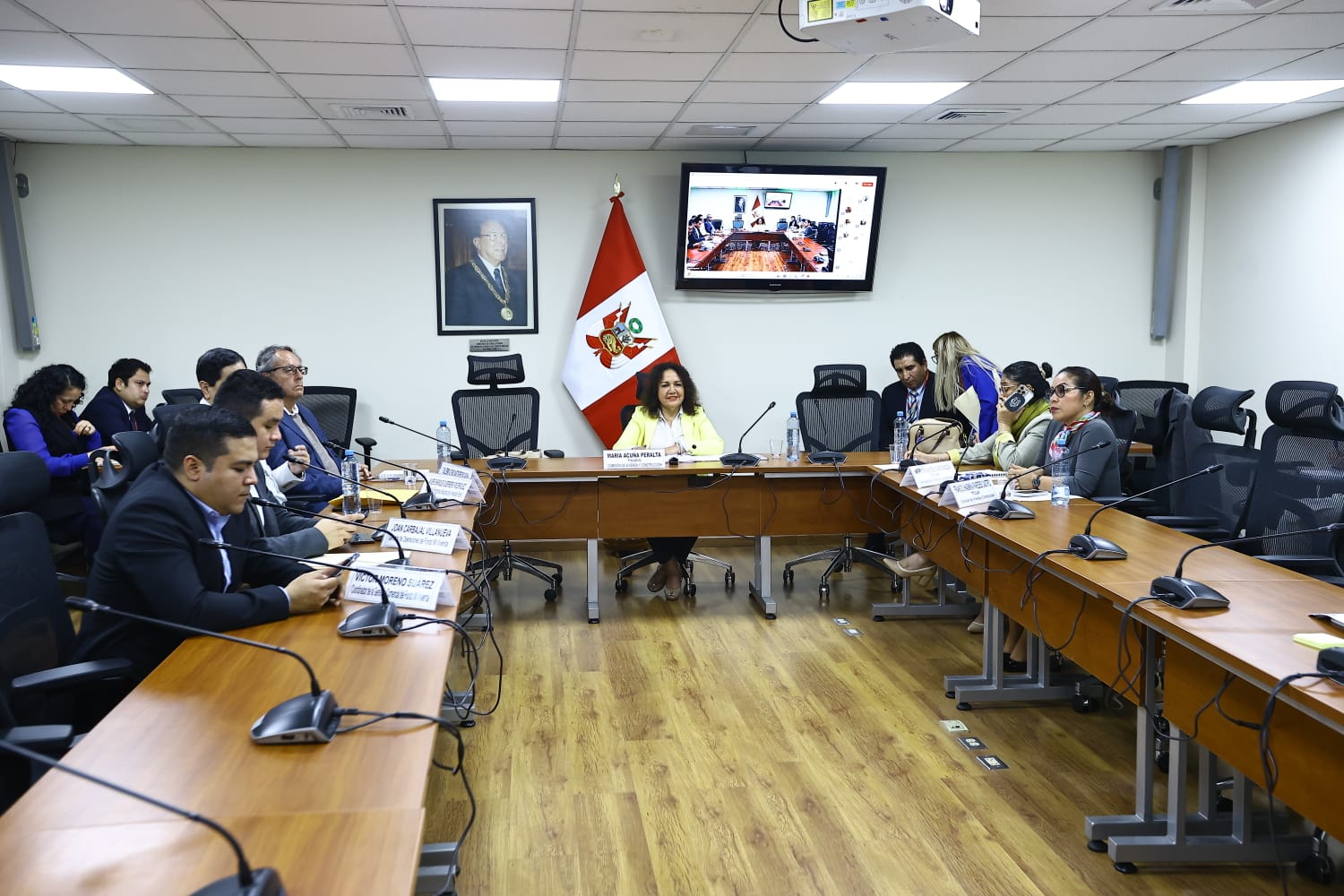 Congresista María Acuña preside la sesión de la Comisión de Vivienda y Construcción en la sala Luis Bedoya Reyes. (Congreso de la República/VVásquez)