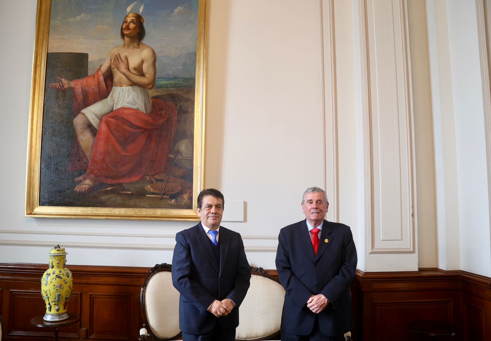 El primer vicepresidente del Congreso, Fernando Rospigliosi, sostiene una reunión con el fiscal de la Nación (i), Tomás Gálvez. (Congreso de la República/EArias)