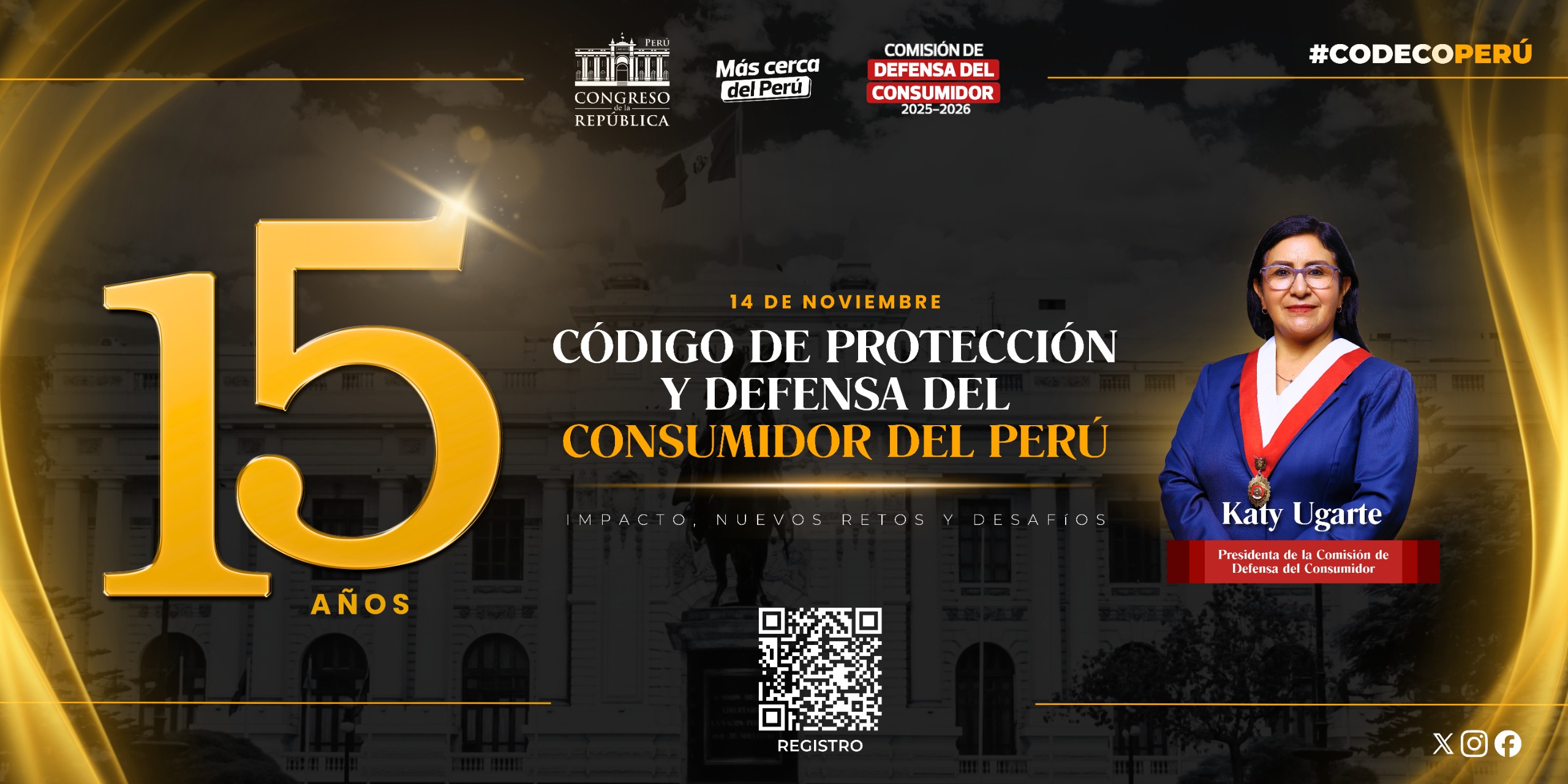 Al cumplirse 15 años de la promulgación del Código de Protección y Defensa del Consumidor (Ley N.° 29571), el Congreso de la República reafirma su compromiso con la defensa de los derechos ciudadanos. La Comisión de Defensa del Consumidor, presidida por la congresista Katy Ugarte, organiza un Foro Internacional que reunirá a destacados especialistas nacionales e internacionales para reflexionar sobre los avances, logros y desafíos que enfrenta la protección del consumidor en el Perú y el mundo.