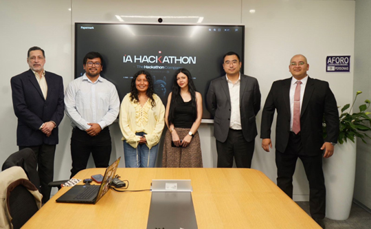 La reunión se llevó a cabo en las instalaciones de Huawei Perú y contó con la participación de Héctor Liu, Director de Relaciones Públicas de Huawei; José Casas, Presidente de Tecnologías de la Información y las Comunicaciones de la Cámara de Comercio de Lima; así como Jhonatan Mortan y Soledad Ñahui, organizadores del evento IA Hackathon.