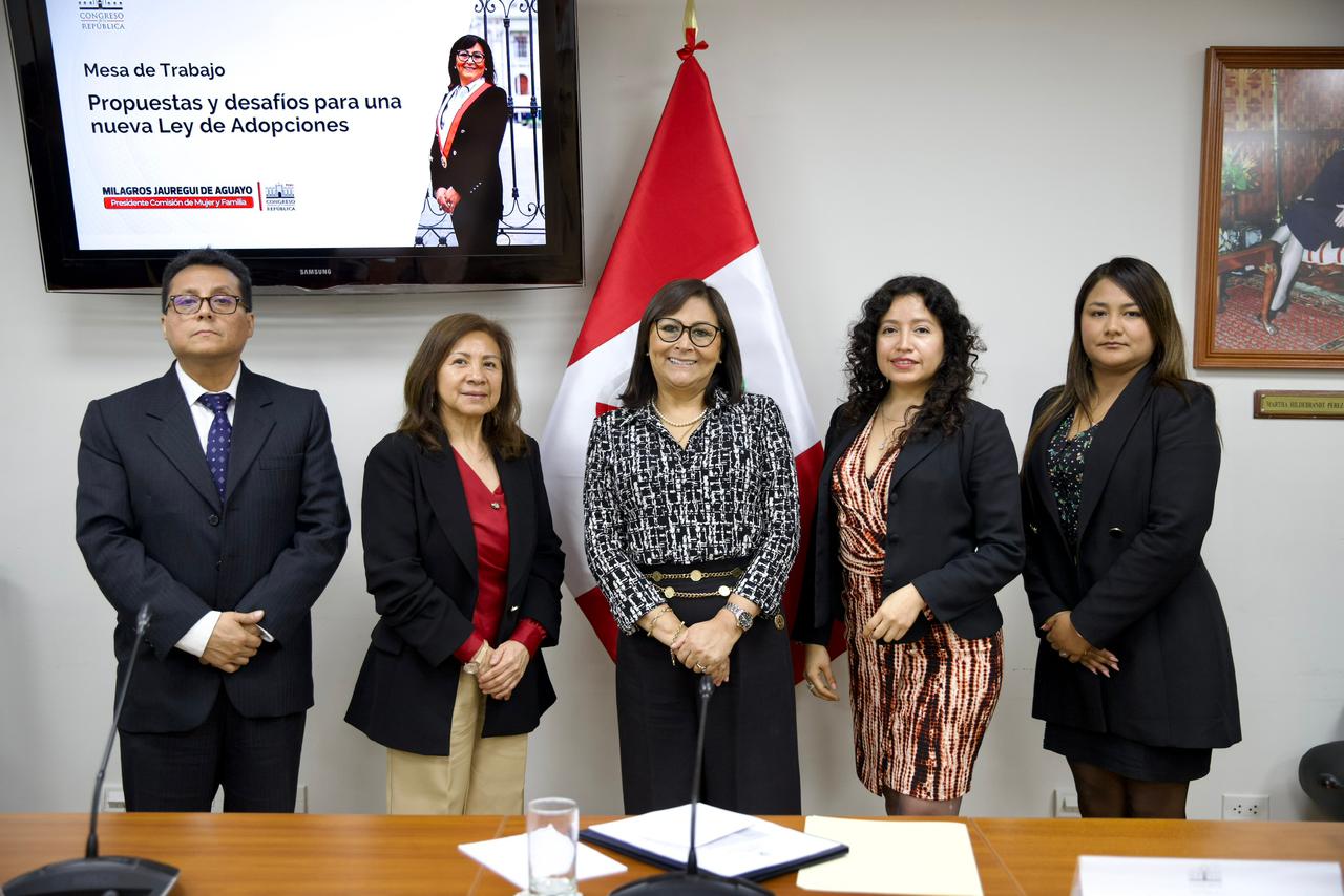 Con el objetivo de fortalecer el sistema de adopciones en el Perú y garantizar el derecho de cada niño a crecer en un entorno familiar, la Comisión de Mujer y Familia, presidida por la congresista Milagros Jáuregui de Aguayo (RP), desarrolló la mesa de trabajo “Propuestas y desafíos para una nueva Ley de Adopciones”, en la que participaron representantes del Ministerio de la Mujer y Poblaciones Vulnerables, el Ministerio Público y el Poder Judicial.