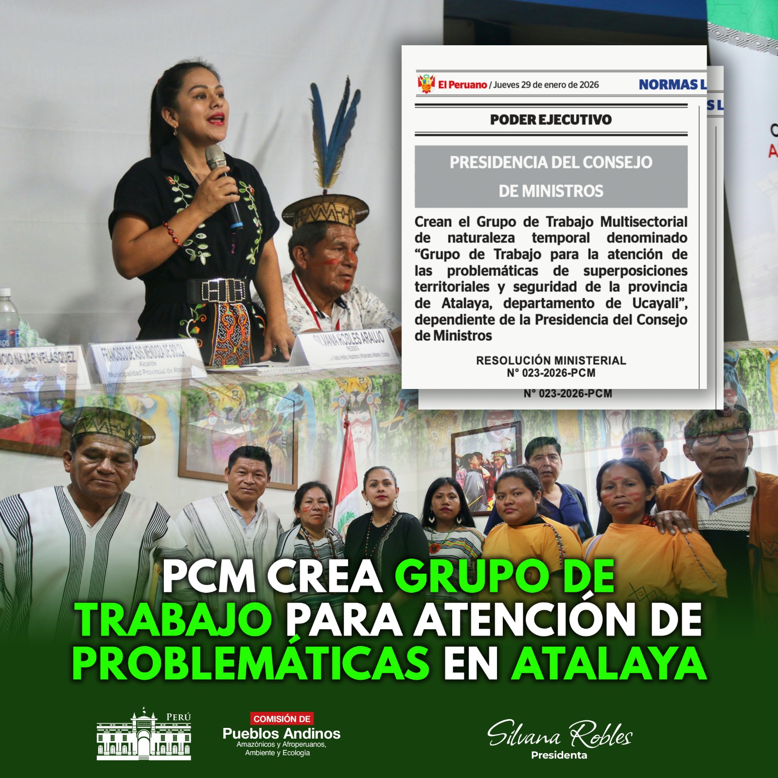 La conformación de este grupo de trabajo constituye un avance significativo y es resultado del proceso de diálogo, fiscalización y articulación interinstitucional que la Comisión de Pueblos viene impulsando de manera sostenida desde que asumió funciones en agosto de 2025, con el objetivo de atender una problemática histórica que afecta gravemente a los pueblos indígenas de la provincia de Atalaya.