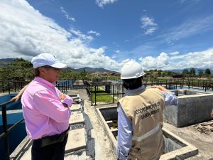 Durante la inspección, el parlamentario recorrió las instalaciones de la bocatoma de agua y la planta de tratamiento de aguas residuales (PTAR), constatando que la obra estuvo paralizada por un tiempo.