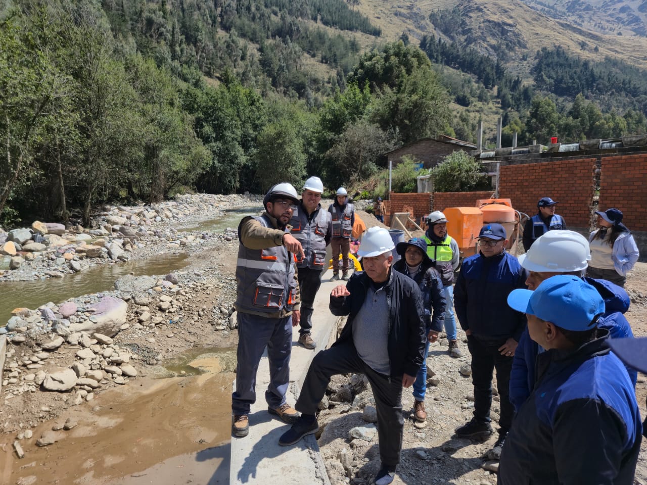 El segundo punto del recorrido fue la zona donde se construye la nueva Captación Chamisería sobre el río Shullcas, y que, según información de Sedam Huancayo, se ejecuta con una inversión que asciende a más de S/ 2.6 millones. El proyecto contempla una estructura de concreto armado, compuertas metálicas, defensas ribereñas, cerco perimétrico y un módulo de operación que permitirá optimizar el sistema de captación actual.