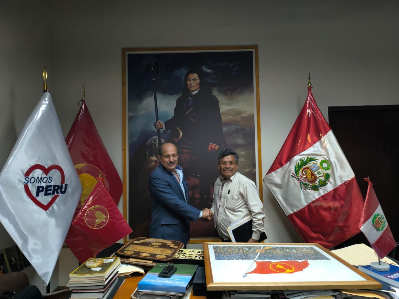 El congresista Héctor Valer, de la bancada de Somos Perú, se reunió con el presidente de la agrupación Los Machuaychas de Juliaca, Hernán Larico Vera, para encontrar el apoyo a la ampliación del licenciamiento de la Universidad Andina Néstor Cáceres Velásquez.
