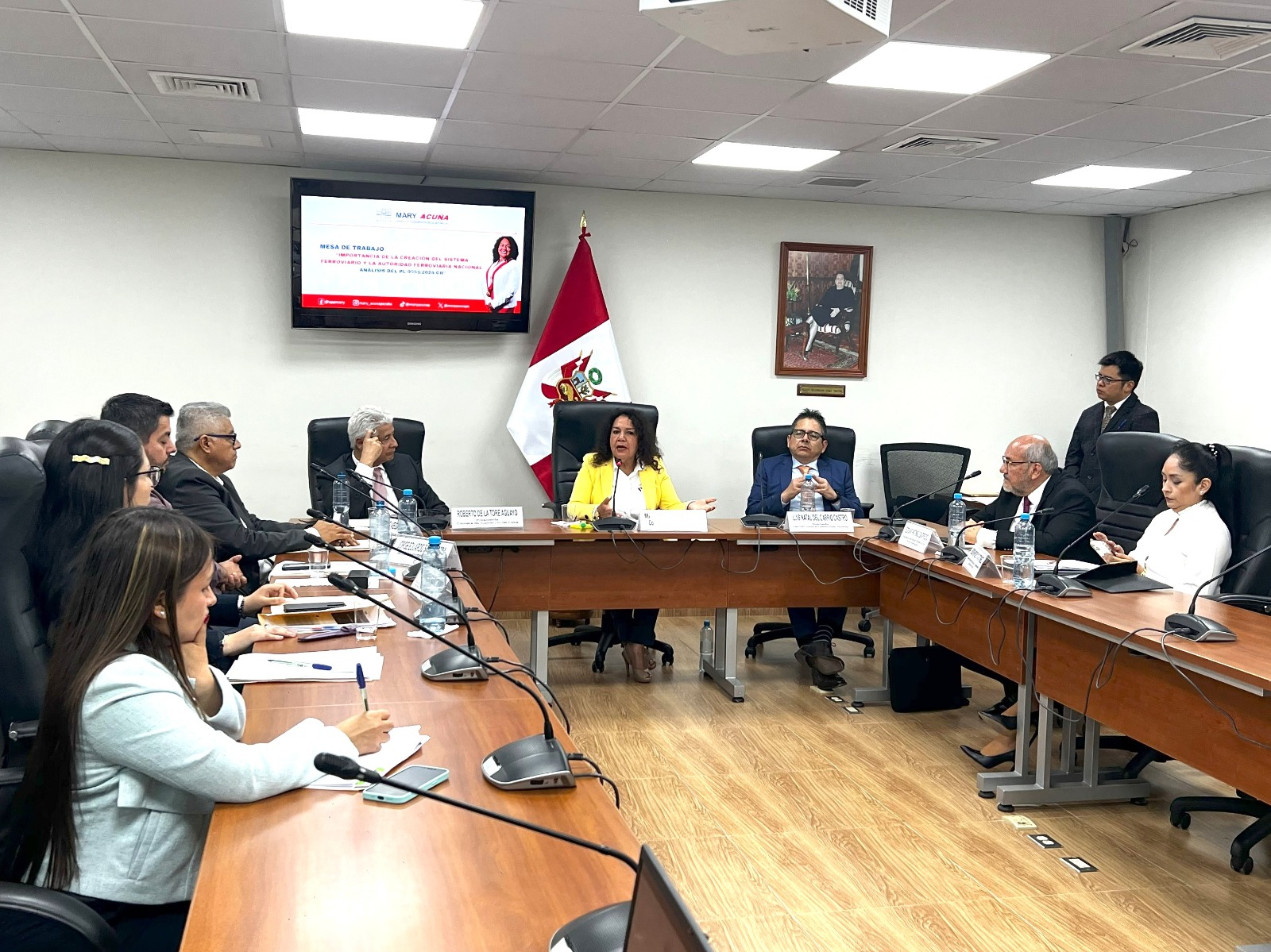 En busca de ordenar, regular y dinamizar el sistema ferroviario del país, la congresista Mary Acuña organizó una mesa de trabajo centrada en la importancia de crear el Sistema Ferroviario Nacional y la Autoridad Ferroviaria Nacional (AFN), como parte del análisis técnico de su Proyecto de Ley 9951/2024-CR.