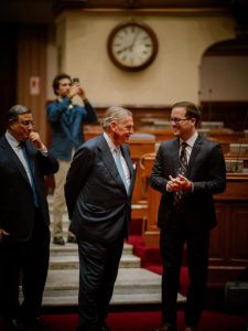 El parlamentario Alejandro Cavero Alva participó en la ceremonia de condecoración al economista Jesús Huerta de Soto, quien recibió la Medalla de Honor del Congreso en reconocimiento a su trayectoria intelectual y su defensa de la libertad económica.