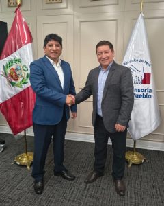En Lima, el congresista Guido Bellido Ugarte sostuvo una reunión de trabajo con Josué Manuel Gutiérrez Cóndor, titular de la Defensoría del Pueblo, con el propósito de coordinar y fortalecer las acciones que dicha institución desarrolla en favor de la ciudadanía.