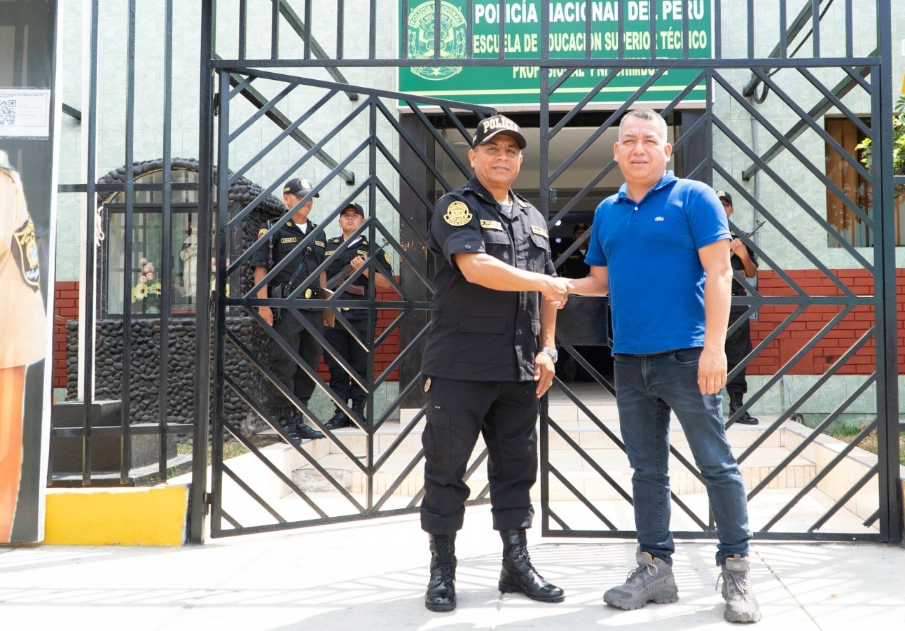 En Áncash, el congresista Darwin Espinoza visitó la Escuela de Educación Superior Técnico Profesional de la PNP – Nuevo Chimbote, donde sostuvo una reunión de trabajo con el comandante PNP Engelbert Verástegui Díaz, director de la institución, con el objetivo de conocer de primera mano su situación actual.