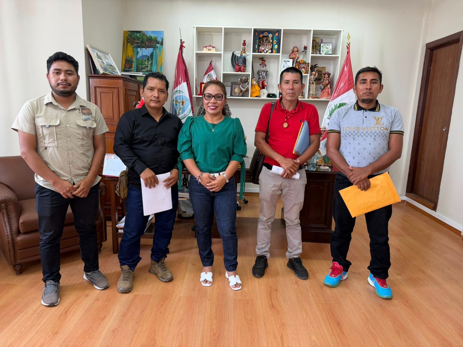 Por su parte, la congresista Francis Paredes Castro recibió a representantes de la Comunidad Nativa “Uni Kattay”, perteneciente a la familia lingüística Pano y al pueblo Kakataibo, en la provincia de Padre Abad, región Ucayali, quienes expusieron sus principales demandas vinculadas al desarrollo de sus comunidades y el respeto de sus derechos.