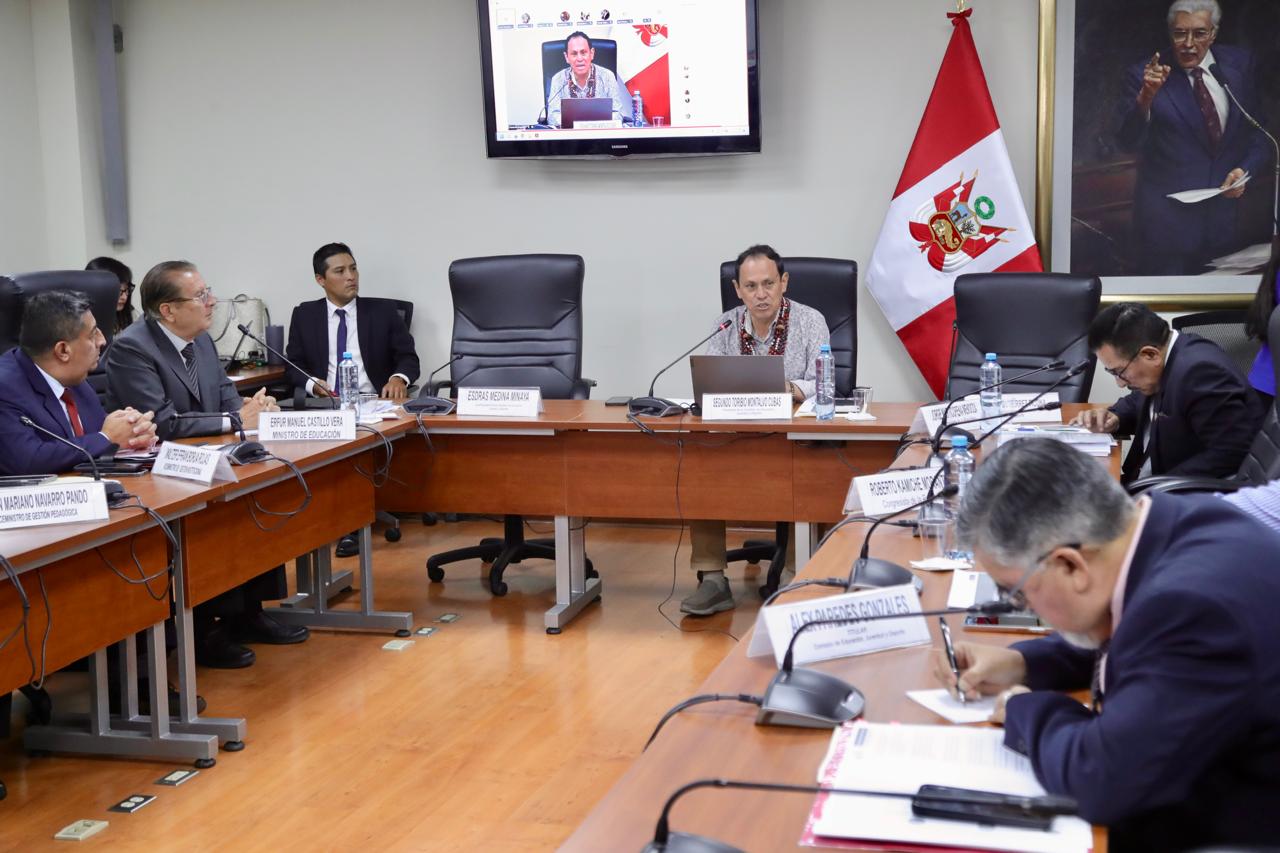 La Comisión de Educación, Juventud y Deporte, que preside el congresista Segundo Montalvo Cubas (bancada Perú Libre) recibió, esta mañana, al titular del sector, Erfurt Castillo, a fin de que brinde diversos informes sobre temas vinculados a su cartera, como los motivos de la resolución viceministerial que dispone las clases virtuales en las instituciones públicas educativas de Lima y Callao hasta el 14 de marzo.