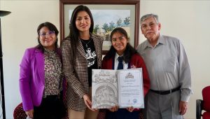 La congresista Diana Gonzales Delgado visitó el colegio Nuestra Señora del Pilar de Arequipa, donde hizo un reconocimiento las alumnas que obtuvieron los primeros lugares en el Concurso Premio Nacional de Minería Escolar (PERUMIN 37), donde destacaron por su talento y compromiso con el desarrollo sostenible del país.