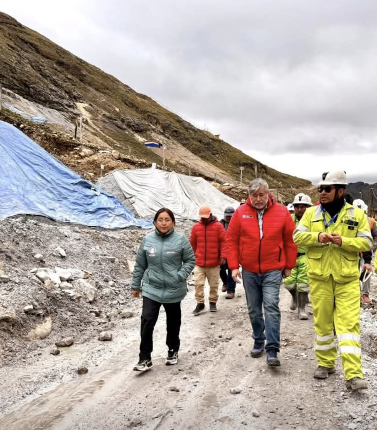 En dicho acto, estuvo acompañada por funcionarios de la Autoridad Nacional del Agua – ANA, Ministerio del Ambiente, OEFA y Dirección Regional de Energía y Minas, donde pudieron constatar entre otros hechos, que los desmontes y depósito de minerales no se encuentran cubiertos, quedando expuestos a posibles desbordes ante las intensas lluvias.