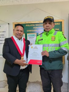 En la provincia de Caylloma, el congresista Esdras Medina Minaya visitó la comisaría de Huambo, dirigida por el superior Mario Noa Merma, a quien expresó su reconocimiento por el valioso trabajo que realiza la Policía Nacional del Perú en favor de la comunidad.
