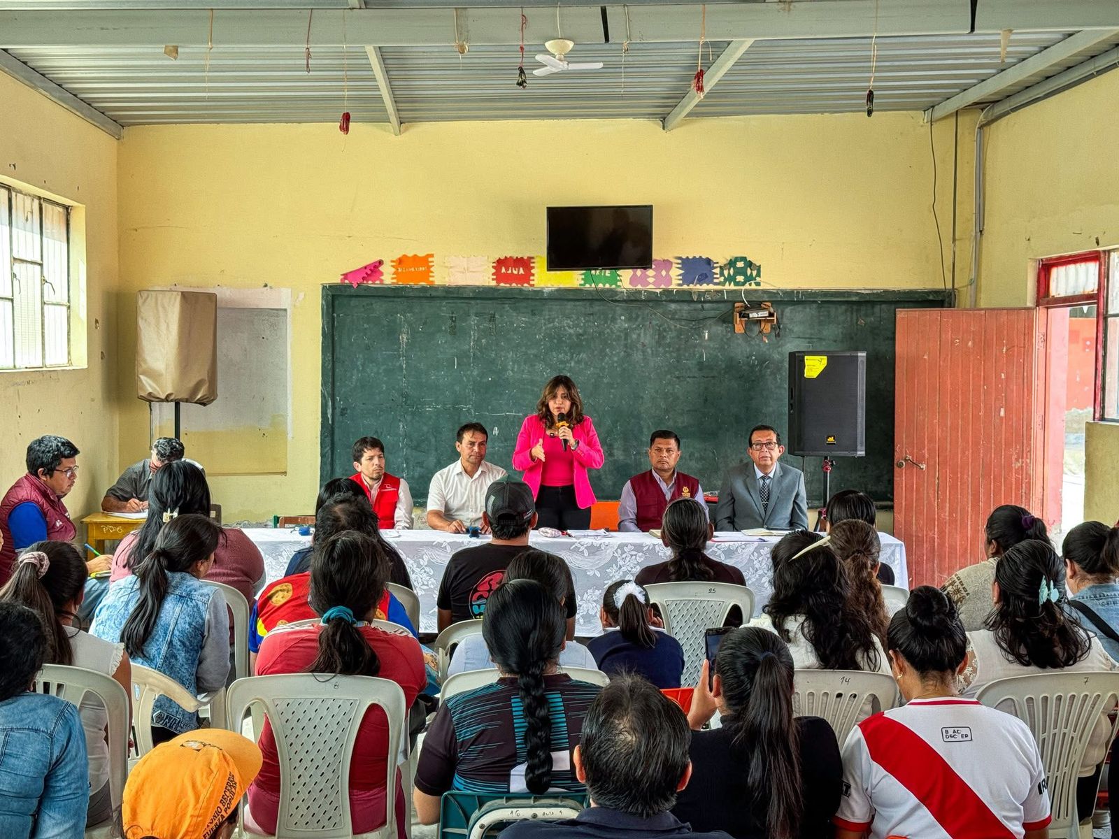 Posteriormente, llegó a la I.E. Santa Ana, en el distrito de José Leonardo Ortiz, institución que fue incluida en la Ley de Presupuesto 2026 con una asignación de S/100,000 para la elaboración de su expediente técnico, primer paso para su esperada reconstrucción.