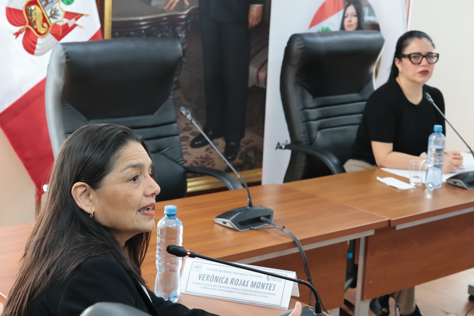 La Comisión de Ciencia, Innovación y Tecnología que preside la congresista Ariana Orué Medina (bancada Podemos Perú) recibió, esta mañana, una exposición sobre la “Gobernanza ética de la Inteligencia Artificial” por parte de la coordinadora del Grupo de Trabajo de Inteligencia Artificial y Derecho del Departamento de Derecho de la Pontifica Universidad Católica del Perú (PUCP), Verónica Rojas.