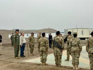 El titular del Parlamento arribó a la base a bordo de un helicóptero de la FAP, acompañado por altos oficiales, e inició un recorrido por la denominada Base Logística Punta Lobos, también conocida como Base Científica de Punta Lobos, donde funciona el centro de monitoreo y operaciones del satélite nacional Perú SAT, pieza importante para la seguridad, vigilancia y desarrollo tecnológico del país.