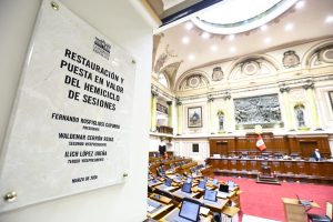 En un acto simbólico de especial significado histórico, la Mesa Directiva del Congreso, presidida por Fernando Rospigliosi Capurro, develó la placa conmemorativa por la culminación de los trabajos de restauración y puesta en valor del hemiciclo de sesiones del Palacio Legislativo, con el objetivo de recuperar el acabado original de esta edificación histórica que data de 1904.