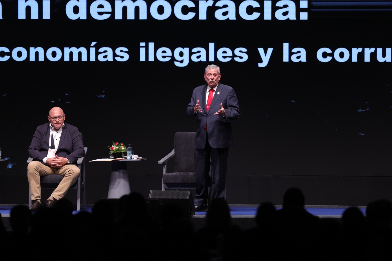 También se refirió al sistema penitenciario como otro eslabón crítico. Aludió al caso del penal del Callao, diseñado para 500 internos y albergando 3,500, y señaló que la falta de agentes suficientes y salarios bajos conducen a corrupción sistemática. Ante ello, instó al próximo gobierno a lanzar “un trabajo duro y fuerte”: estado de excepción, redadas masivas, prisiones provisionales mientras construyen más cárceles, y un liderazgo decidido que no ceda ante críticas de organismos nacionales o internacionales.