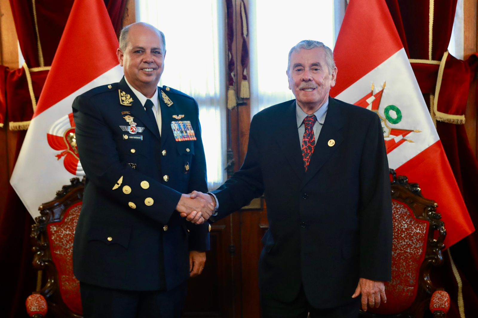 El primer vicepresidente encargado de la Presidencia del Congreso, Fernando Rospigliosi Capurro, se reunió con el comandante general de la Fuerza Aérea del Perú (FAP), general del aire Mario Raúl Contreras León Carty, con quien abordó el tema de los avances tecnológicos que viene desarrollando la institución en materia aeronáutica.
