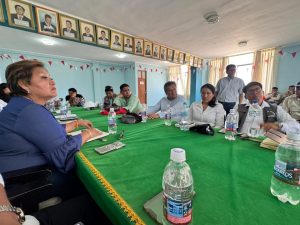 En mesa de trabajo, la congresista Maricruz Zeta Chunga sostuvo una reunión con el alcalde del distrito de La Unión, representantes del ministerio de Vivienda y Construcción y demás autoridades para coordinar acciones con miras al saneamiento físico del terreno donde se perforará el nuevo pozo del proyecto de agua y alcantarillado del casco urbano.
