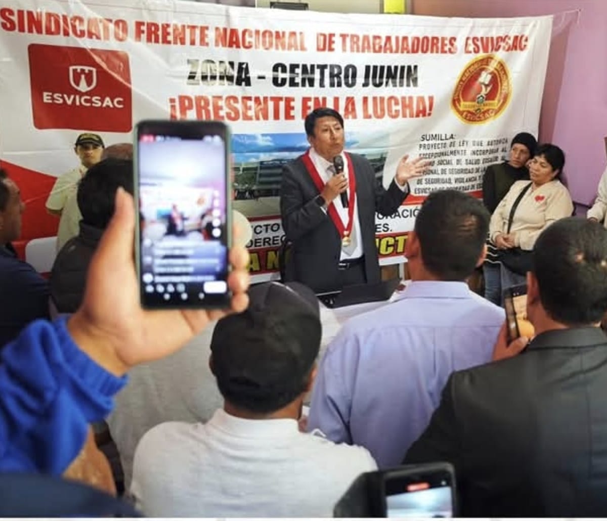 En otro momento, participó en una reunión de trabajo con el Frente Nacional de Trabajadores de la empresa ESVICSAC para tratar sobre el Proyecto de Ley N.° 12529/2025-CR, que reconoce la naturaleza laboral del personal de la empresa de seguridad, vigilancia y control ESVICSAC, y dispone su incorporación del régimen laboral del Decreto Legislativo 728, Ley de Fomento del Empleo, en el seguro social de salud EsSalud.
