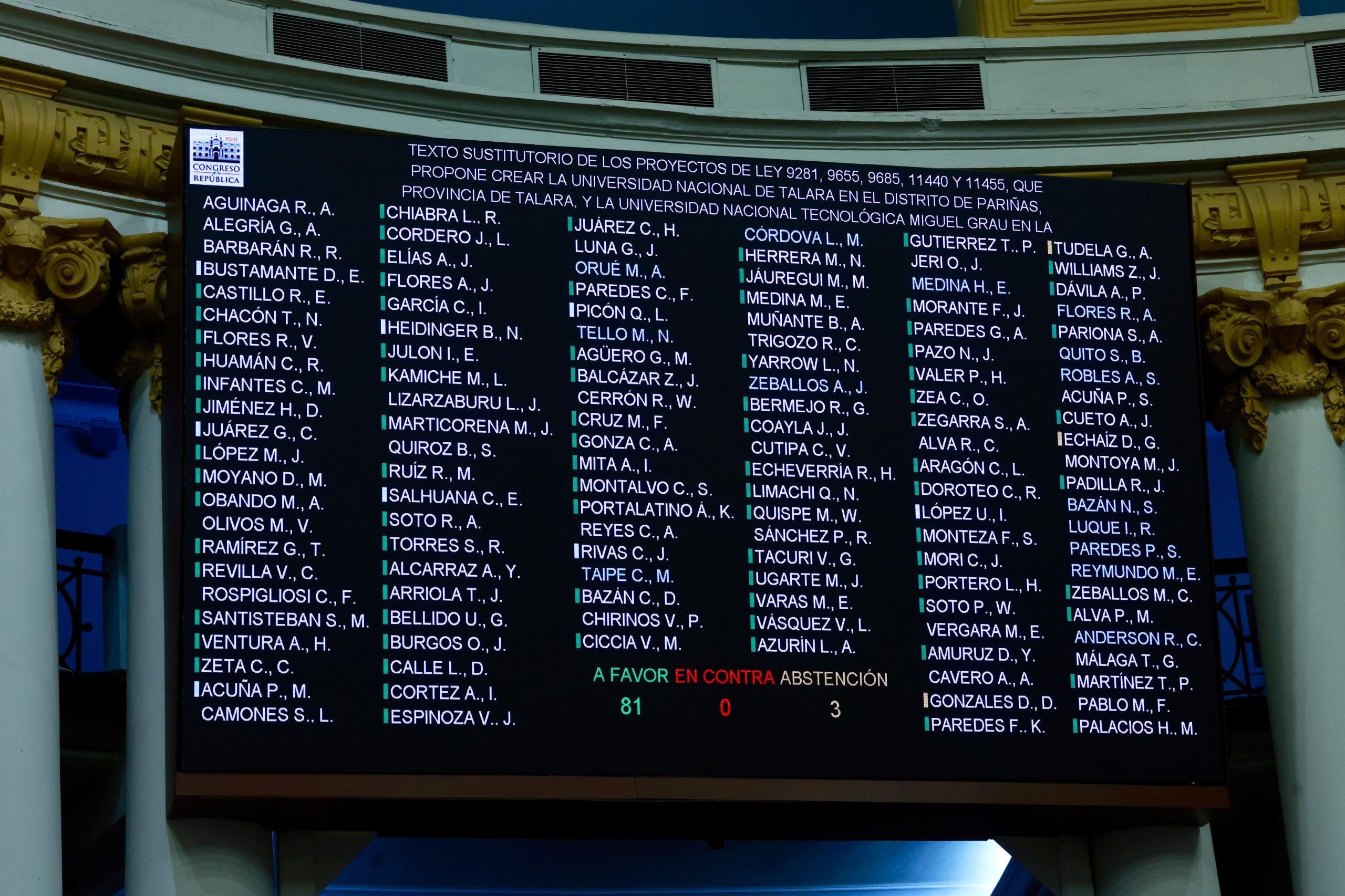 El Pleno del Congreso aprobó el dictamen recaído en los proyectos de ley 9281, 9655, 9685, 11440 y 11455, que crea la Universidad Nacional de Talara y la Universidad Nacional Tecnológica Miguel Grau de Paita.
