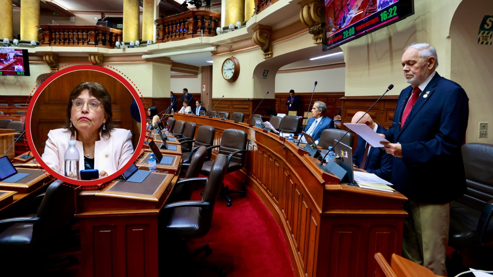 Vale indicar que el debate se originó a partir del informe final de las denuncias constitucionales 563 y 618 (acumuladas), presentadas por los congresistas Yorel Kira Alcarraz Agüero (bancada PP) y José Ernesto Cueto Aservi (bancada HyD). Ambos parlamentarios cuestionaron la actuación de la entonces titular del Ministerio Público por la presentación de la Denuncia Constitucional 549 contra 11 legisladores, por votar a favor del dictamen del Proyecto de Ley 319/2021-CR, que reguló la contratación de pensionistas de las Fuerzas Armadas y la Policía Nacional.