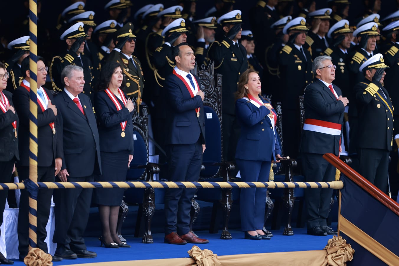 El presidente del Congreso de la República, José Jerí Oré, participó esta mañana en la ceremonia cívico-patriótica conmemorativa por el 204.° aniversario de creación de la Marina de Guerra del Perú y el 146.° aniversario del glorioso combate naval de Angamos, que se celebra el 8 de octubre de cada año.
