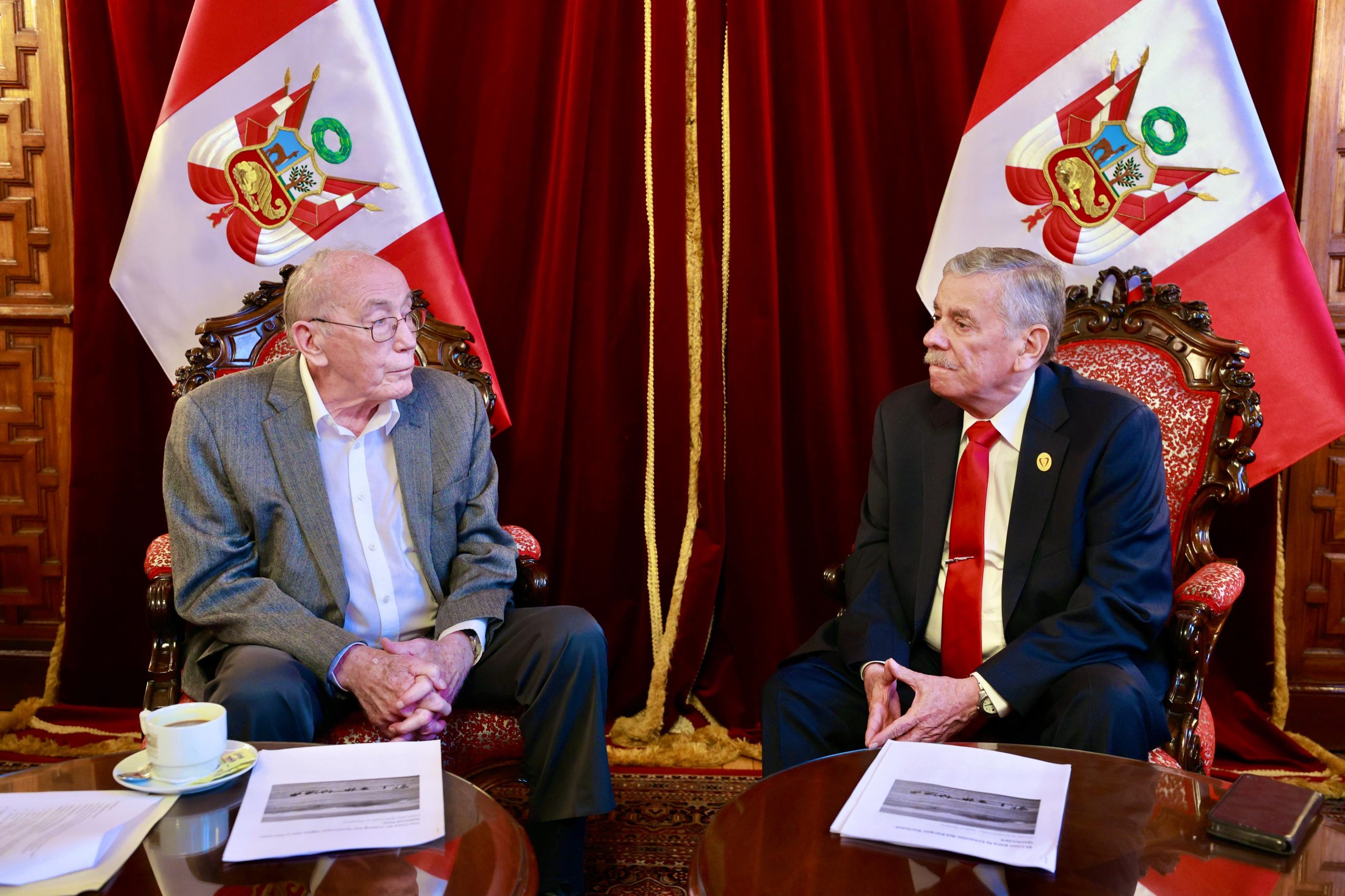 El científico estadounidense Lonnie Thompson se reunió esta mañana con el primer vicepresidente encargado de la Presidencia del Congreso, Fernando Rospigliosi, para presentar la propuesta de creación del Parque Nacional Quelccaya, en la región Cusco.