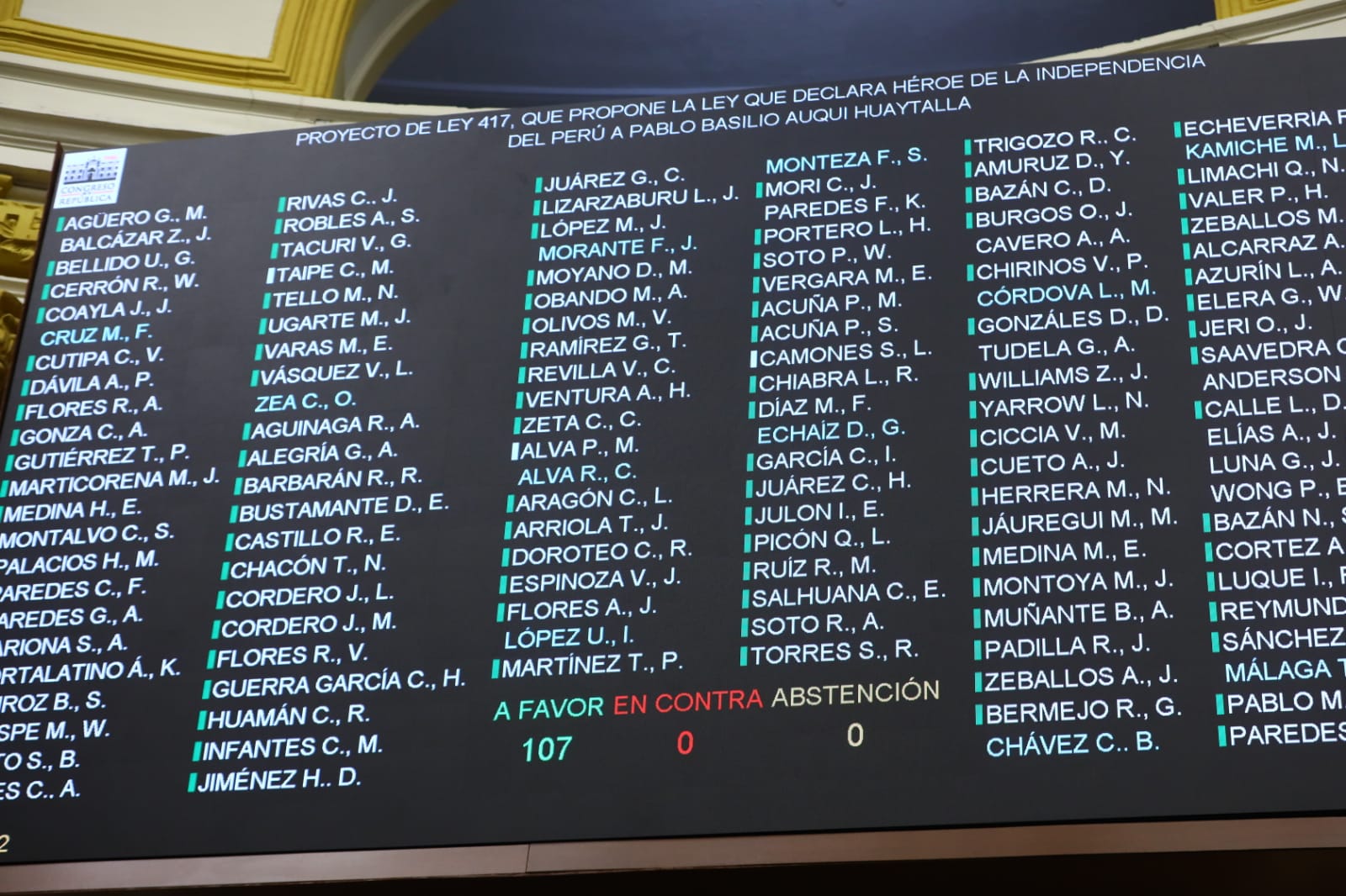 Por unanimidad, la Representación Nacional aprobó declarar Héroe de la Independencia del Perú a Pablo Basilio Auqui Huaytalla, en el marco de las conmemoraciones del bicentenario y de la proclamación de la independencia nacional y la batalla de Ayacucho que selló la emancipación de América Latina del yugo español.