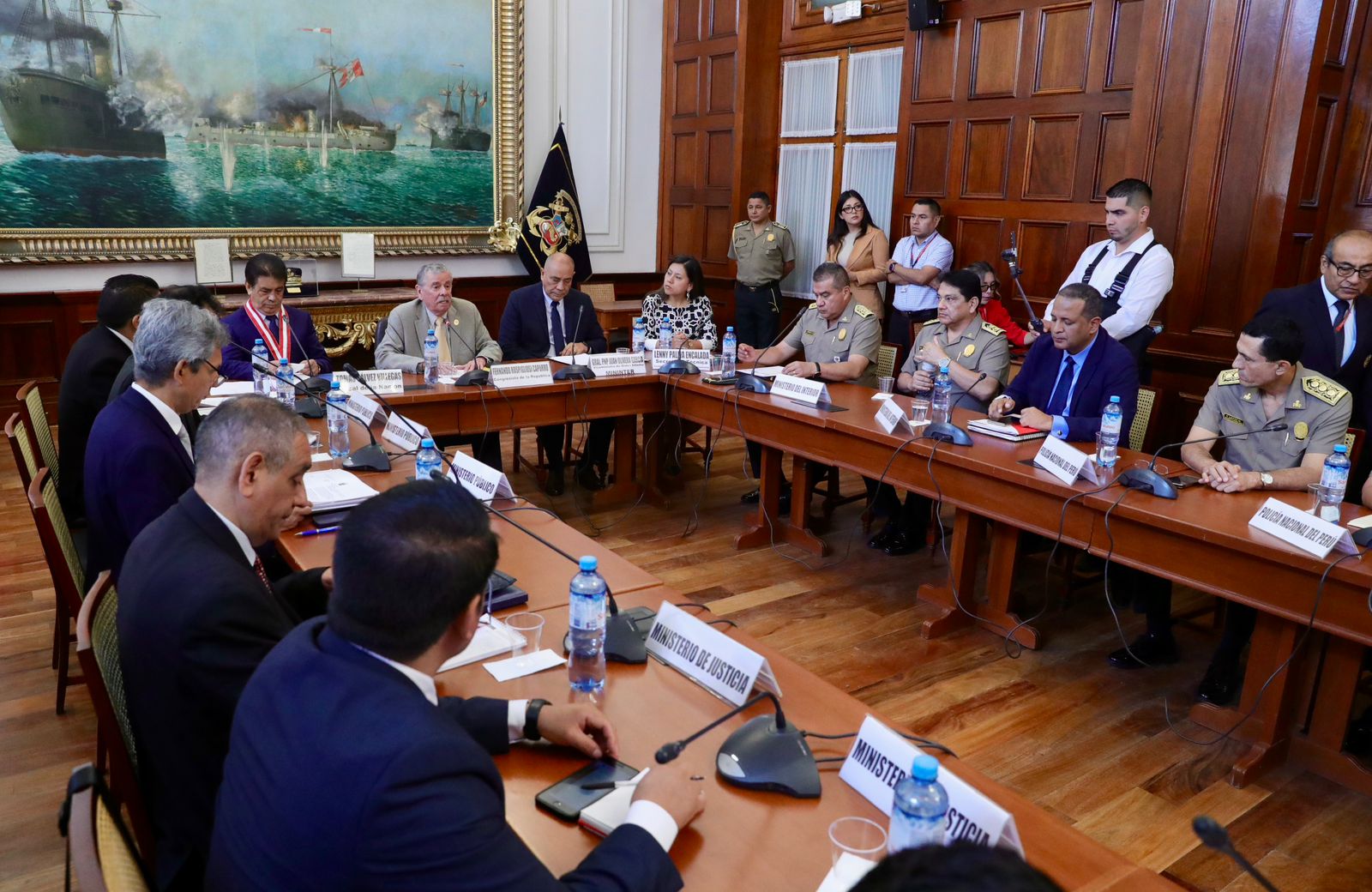 La reunión fue dirigida por el presidente (e) del Congreso, Fernando Rospigliosi Capurro, quien estuvo acompañado del fiscal de la nación, Tomás Gálvez; el viceministro de Orden Interno del Ministerio del Interior, Juan Olivera; y el comandante general de la Policía Nacional del Perú, Oscar Arriola, entre otros.