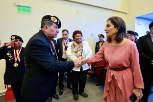 La congresista Patricia Juárez Gallegos (bancada Fuerza Popular) encabezó el jueves 4 la ceremonia de reconocimiento a más de un centenar de licenciados de las Fuerzas Armadas por su participación en defensa de la democracia y la pacificación nacional.