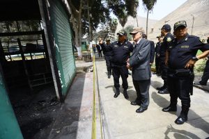 En Puente Piedra, el primer vicepresidente encargado de la presidencia del Congreso, Fernando Rospigliosi Capurro, inspeccionó la Escuela de Suboficiales de la Policía Nacional del Perú luego del incendio que destruyó uno de sus pabellones y dejó en evidencia las precarias condiciones de esa infraestructura.