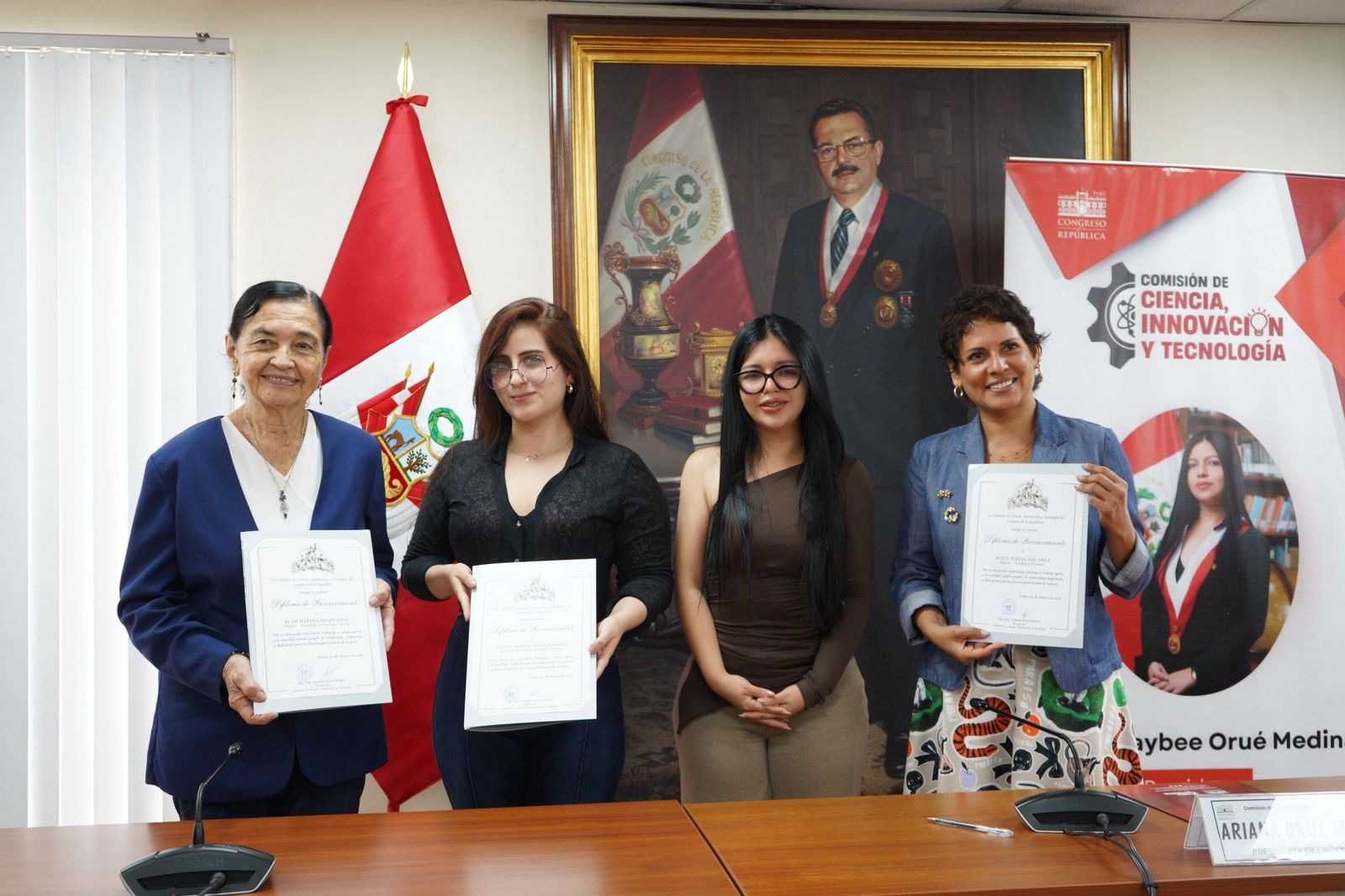 La Comisión de Ciencia, Innovación y Tecnología, que preside la congresista Ariana Orué Medina (bancada Podemos Perú), realizó el lunes 9 un reconocimiento y espacios de reflexión sobre el rol de las mujeres peruanas vinculadas a la ciencia y tecnología que permite la innovación y desarrollo del país, así como reconocer el liderazgo femenino en este espacio intelectual y de investigación.