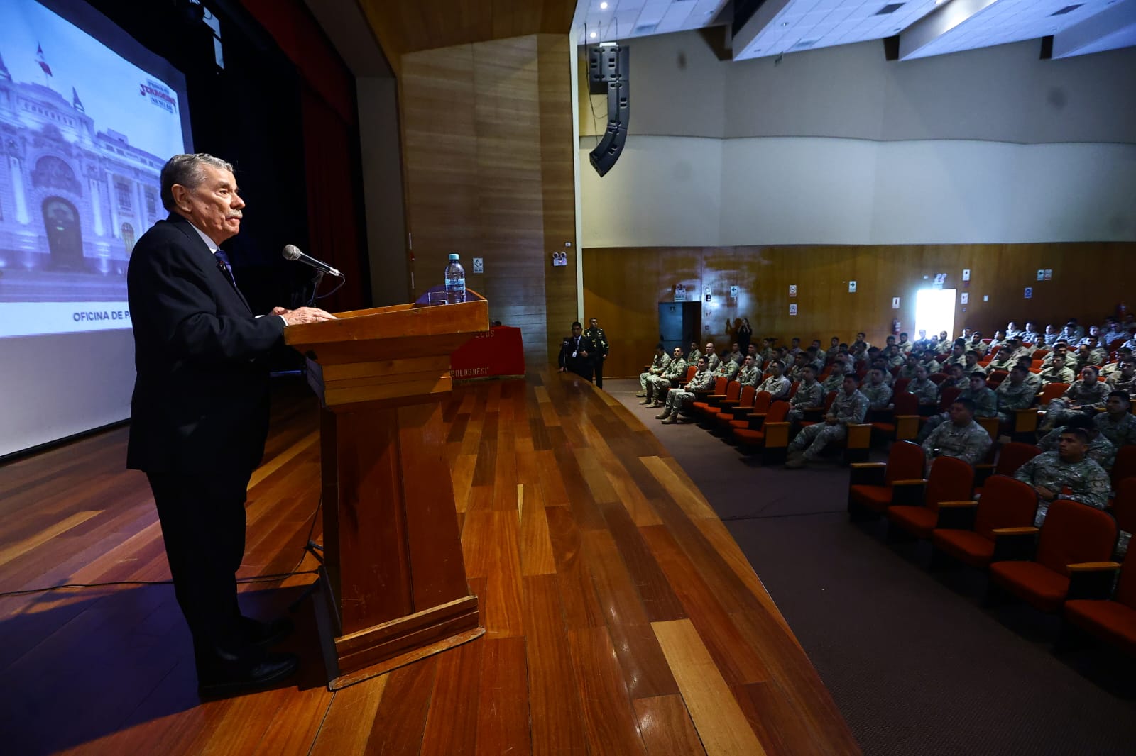 “Ustedes van a poner el pecho y seguir defendiendo a la patria frente a cualquier intento terrorista que quiere imponernos una dictadura brutal”, dijo Rospigliosi ante los jóvenes.